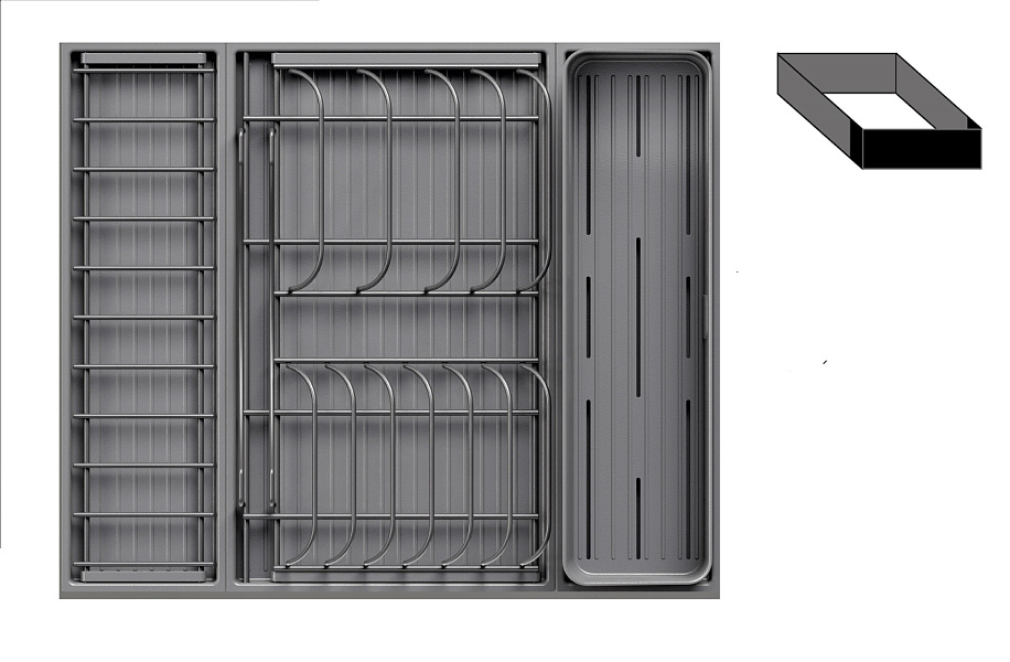 - 1 большой модуль для посуды + 1 малый модуль с решеткой + модуль для столовых приборов