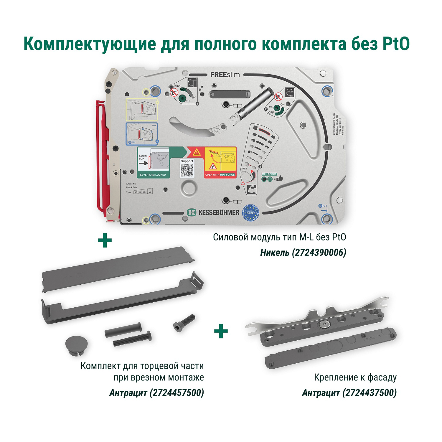 Полный комплект подъемного механизма ФриСлим ФЛАП с доводчиком для врезного монтажа, цвет АНТРАЦИТ Kessebohmer | официальный магазин